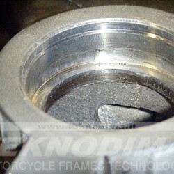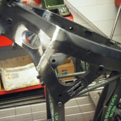 Ogni telaio sinistrato deve essere esaminato con attenzione per stabilire l’idonea procedura d’intervento in base al danno ricevuto dalle differenti dinamiche dei sinistri e per via del materiale sia esso d’acciaio che lega d’alluminio. Mediante tracciatura, è possibile rilevare le coordinate del telaio e, confrontandole con quelle della scheda madre, delimitare la zona di intervento per programmare le fasi della riparazione. Dopo aver posizionato il telaio in dima, la riparazione consiste nel ripristinare le quote dei tre assi (longitudinali, orizzontali e verticali), la simmetria e l’inclinazione originale del cannotto, applicando forze in punti diversi e nevralgici del telaio monitorando costantemente al computer temperature e fasi di riparazione conferite, fino all’ottenimento delle quote geometriche originali, infine, le sedi dei cuscinetti sterzo danneggiate vengono ricostruite e barenate.